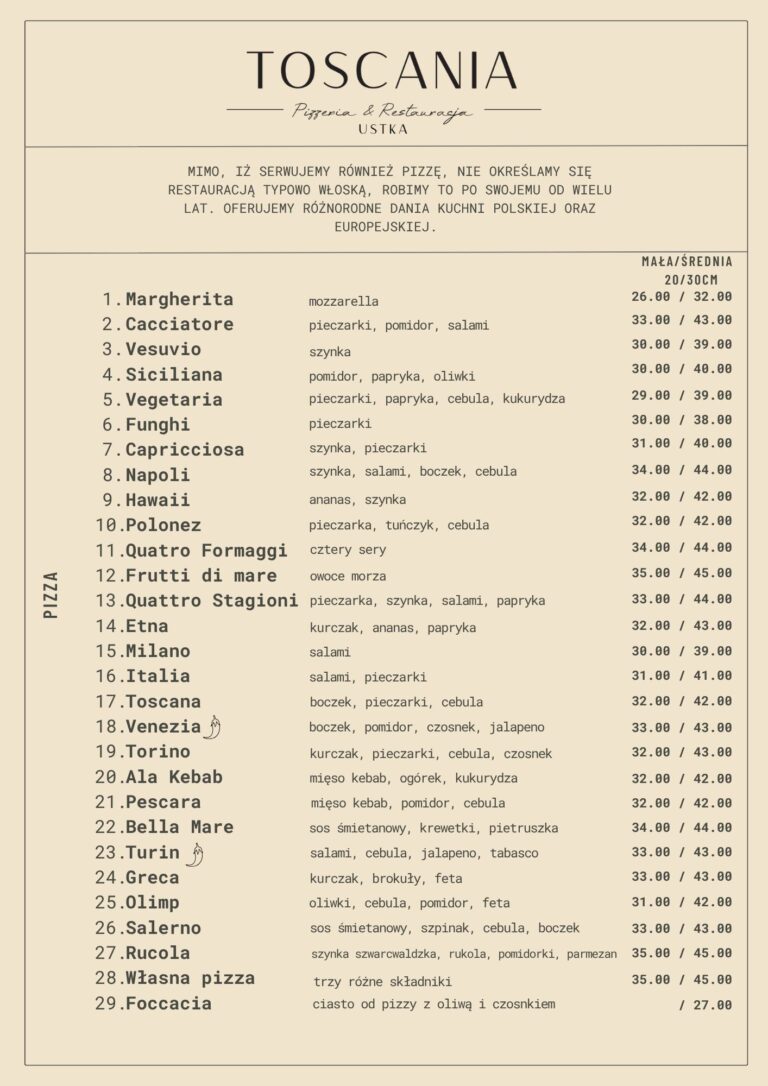 Toscania to lokalna, ustecka restauracja nie należąca do żadnej sieci. Działamy już od 2003 roku. Stawiamy na świeże składniki oraz oryginalne przepisy niezmienne od wielu lat.